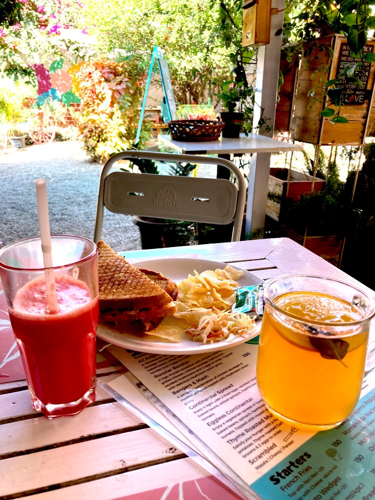 Cafe & Restaurants Breakfast at Zoey’s Cafe, Bangalore Posted by Sudeshna Bhattacharya on Jan 23, 2022May 9, 2022 Today I visited this place and found it very comfortable for a Sunday outing. A warm vibe and a good comfy ambience. Sharing glimpses of the place. Watermelon Juice, Orange and mint tea with Chicken-mushroom Sandwich 🙂 Wall-art with some design lights Share this: Click to share on X (Opens in new window) X Click to share on Facebook (Opens in new window) Facebook Like Loading... Related